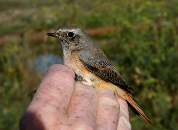 You have to get up early to go ringing, whilst the birds are still active and before the wind gets up. A group of three of us ringed 85 birds at Durlston CP, including a Grasshopper, 6 Garden and many Willow Warblers, 2 Redstarts and a Tree Pipit.