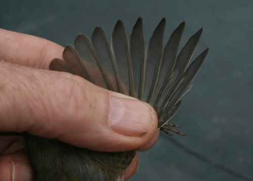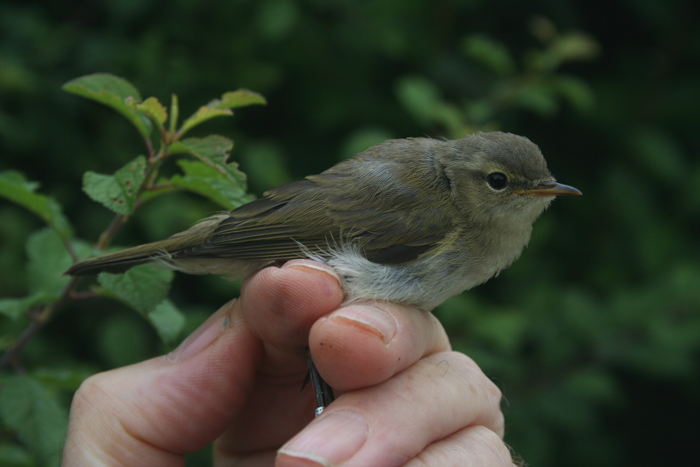 The Chiffchaffs we are catching are either juveniles yet to undergo post juvenile moult or adults in full wing moult, i.e. local breeders. In contrast both young and adult Willow Warblers have completed their moult indicating they are from further afield