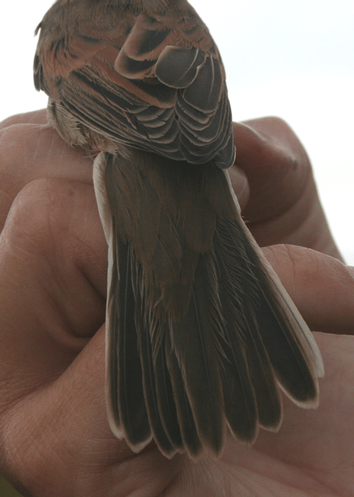 ..... and white rather than buff outer tail feather. Note the white extends onto the tip of the next to outermost tail feather.