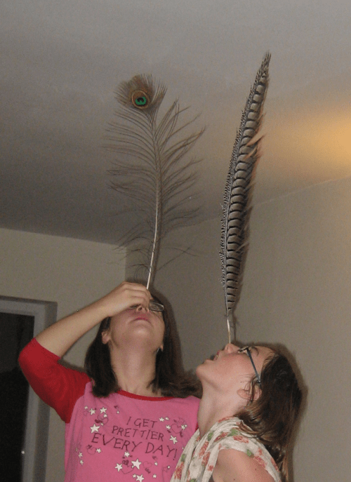 Are Peacock or Reeve's Pheasant tail feathers better suited for balancing on your nose?