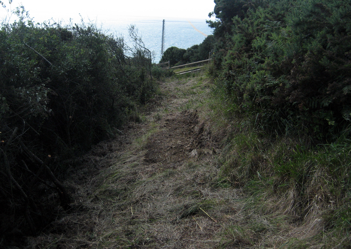 Ringing at Durlston was cancelled due to high winds but we met to continue the cutting of the main net rides. It was hard work cutting through dense scrub but we succeeded and Speckled Woods are already using the rides.