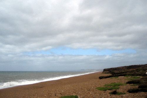 The Fleet ends at Abbotsbury, but the shingle bank continues westwards as far as Cogden Beach.