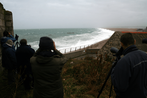 With gale force winds seawatching was the only option. I returned to Portland but this time watched from Chesil Cove, where the Chesil Bank meets the Isle of Portland.