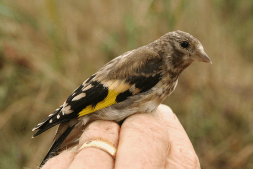 A break in the windy conditions allowed us to ring at Lytchett Bay this morning. The reed beds delivered mainly Reed and Sedge Warblers with the occasional Reed Bunting and Whitethroat. We have started to ring on the edge of an arable filed with a wide margin of corn marigolds. This has proved to be a productive area for Goldfinches, with a flock of up to 40 birds feeding in the area. Chiffchaffs were also using the agricultural margins.