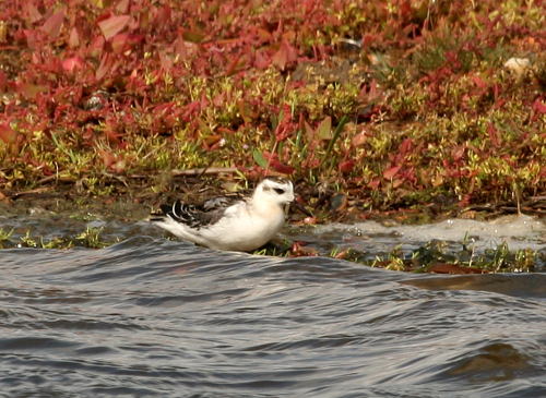The bird we had come to see was a Grey Phalarope, an unusual wader that breeds in the high arctic and winters at sea, mainly in the Benguela current off Namibia and the Humbolt current off western South America. Young birds are often storm driven towards the coast in the autumn and can be seen on seawatches and occasionally feeding on coastal pools.