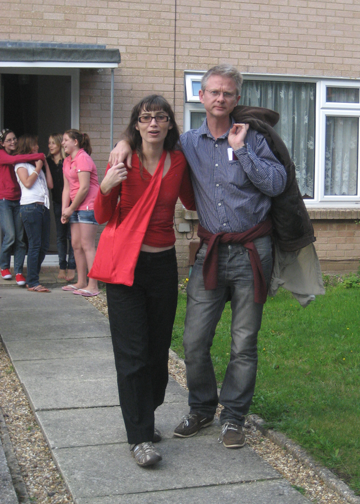 Janis and Andy depart for Hurn airport, Amber and Kara with their friends in the background.