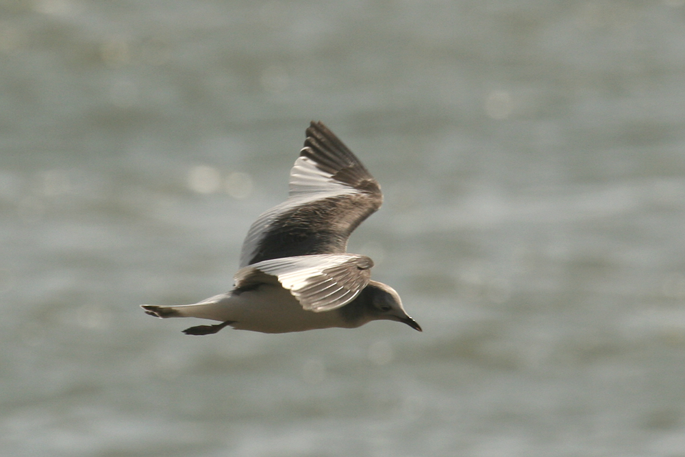 Due to the position of the sun it was only possible to photograph these birds as they flew towards us. The obvious dark M on the upper wings can’t be seen but at least the dark cap and face pattern can.