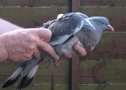 On Sunday morning Shaun and I hoped to have a go ringing Goldfinches at Lytchett Bay but the rain arrived much earlier than forecast so the early start was wasted. Later I was able to do a little ringing in the garden and was rewarded with the capture of this feisty Woodpigeon. Although they may seem highly sedentary, there is a large migration of Woodpigeons across Dorset in early November. Little is known about the origins of these birds, so ringing remains of value.