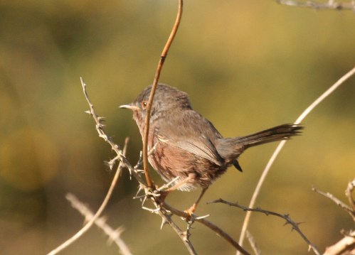 Dartford Warbler - Stanpit. Severely depleted after last winter, Dartford Warbler numbers may be increasing after this years warm, dry spring.