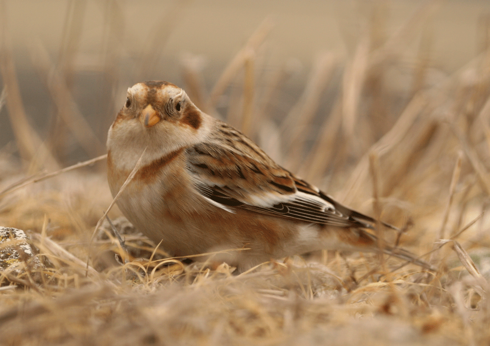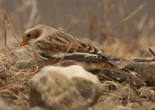 This Snow Bunting was found in the Army Bridging Camp last week. It is very tame and can be seen down to a few feet through the wire fence. However it can go missing behind a small wall for short periods, as I found on my first visit this morning. Snow Buntings are regular winter visitors to eastern Britain (mainly from Iceland) but very few are seen in Dorset each year.