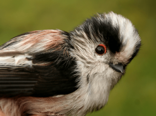 A dozen or more Long-tailed Tits were caught in the same net. Note the orbital ring can change colour depending on the bird's emotions