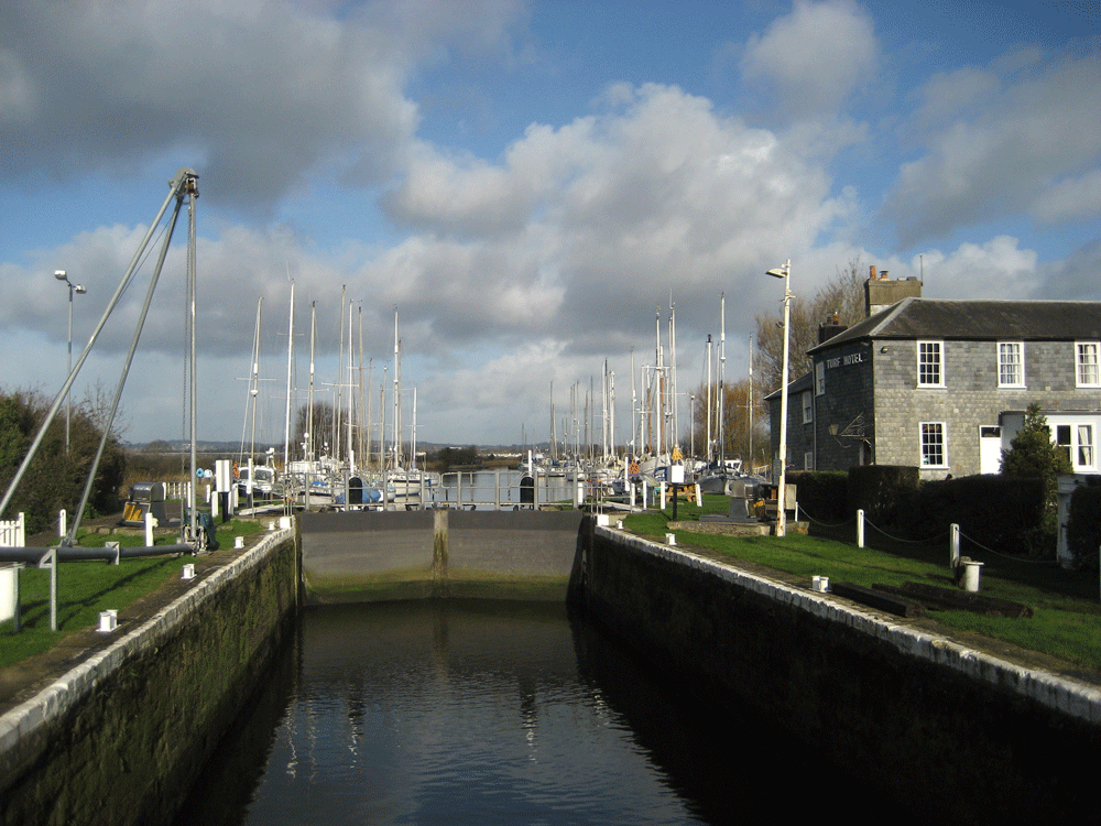 The picturesque Turf Lock and Turf Hotel on the Exeter Ship Canal, the estuary is just to the left of this photo.