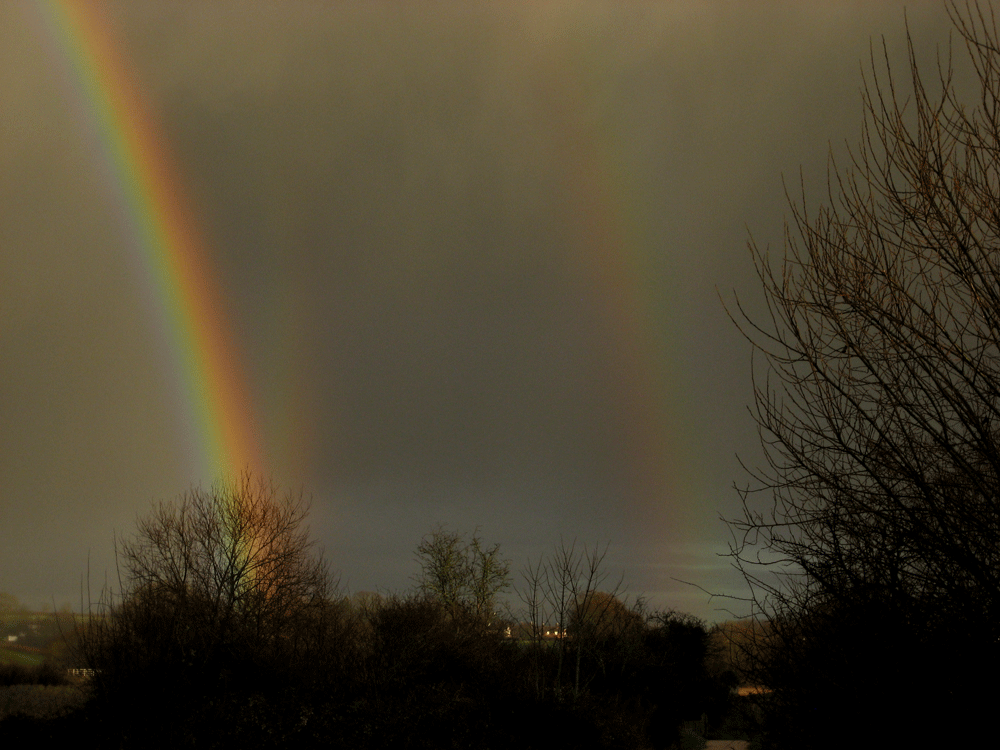 Of course I have seen double rainbows before but I have never seen the vertical 'rainbow spike' that can just be seen above the left hand tree.