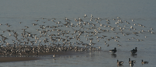 Roosting waders and Brent geese. Large numbers of Knot, Dunlin, Oystercatchers and Grey Plover were present.