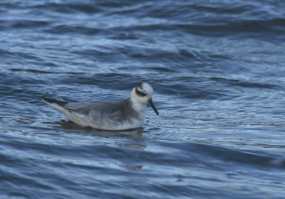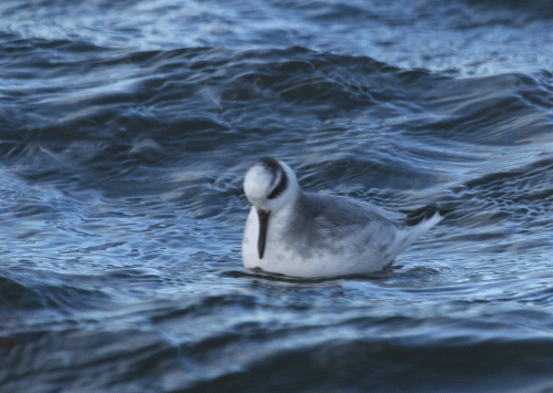 Today Ewan and I chased two such species in Oxfordshire, Temmink’s Stint a diminutive wader that breeds on the Siberian tundra and winters to the south of the Sahara and Grey (or Red) Phalarope, another wader that breeds in the high arctic (Spitsbergen, Novoya Zemla, northern Canada etc) and winters at sea in the Benguela current off Namibia. Both showed well although the stint was out of photo range. The phalarope was on the bitterly cold and windswept Farmoor reservoir where the wind was whipping up bigger waves than we have recently seen on the coast.