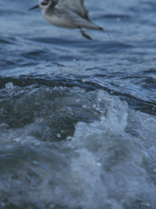 The phalarope was bobbing about and spinning around in the rough water until a particularly large wave convinced it to feed elsewhere.