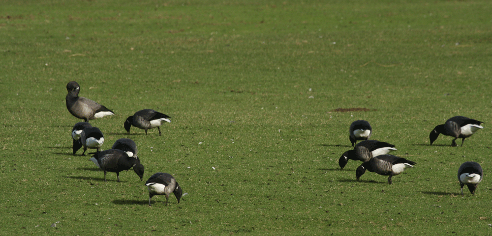 There was about 600 Brent and 100 Canada Geese on the Starcross golf course but the Red-breasted that was there yesterday was AWOL.