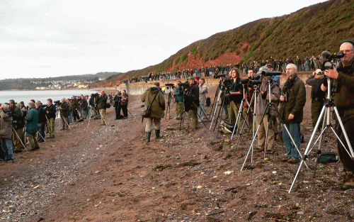 The same area in November 2005 as hundred of birders gather to see the Long-billed Murrelett. There were only two birders present today!