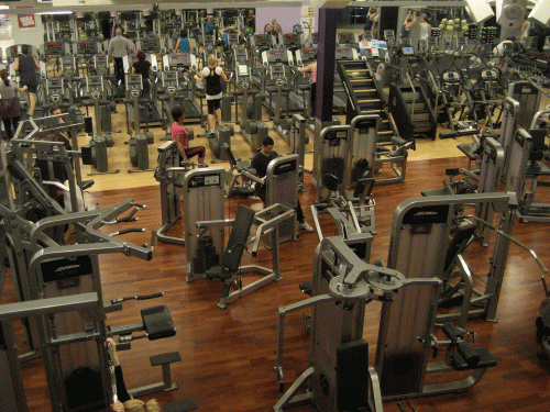 The ground floor of the gym is packed with machines but not with people at this time of day.