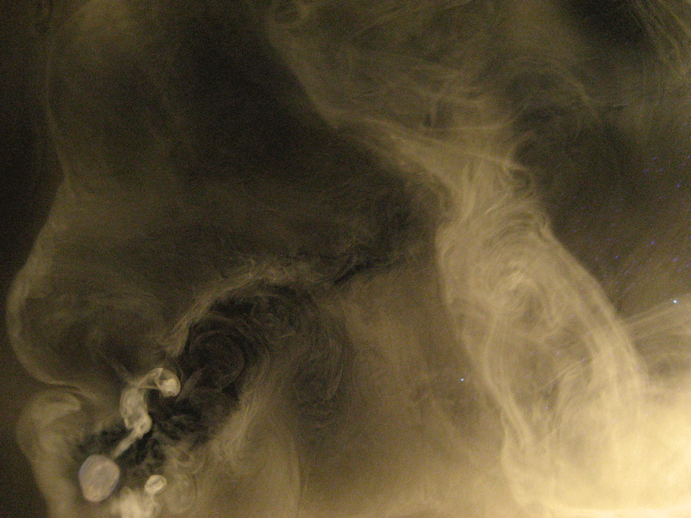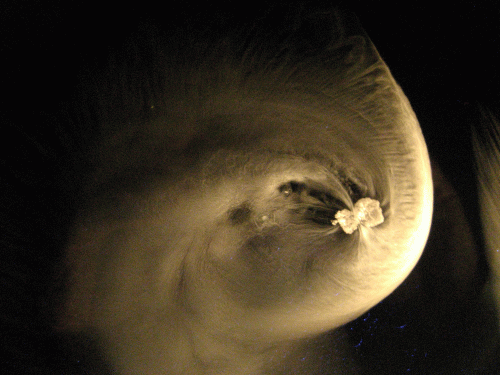 A very simple but beautiful display was produced by dropping pellets of dry ice (solid CO2) onto a water film on a backlit black background........