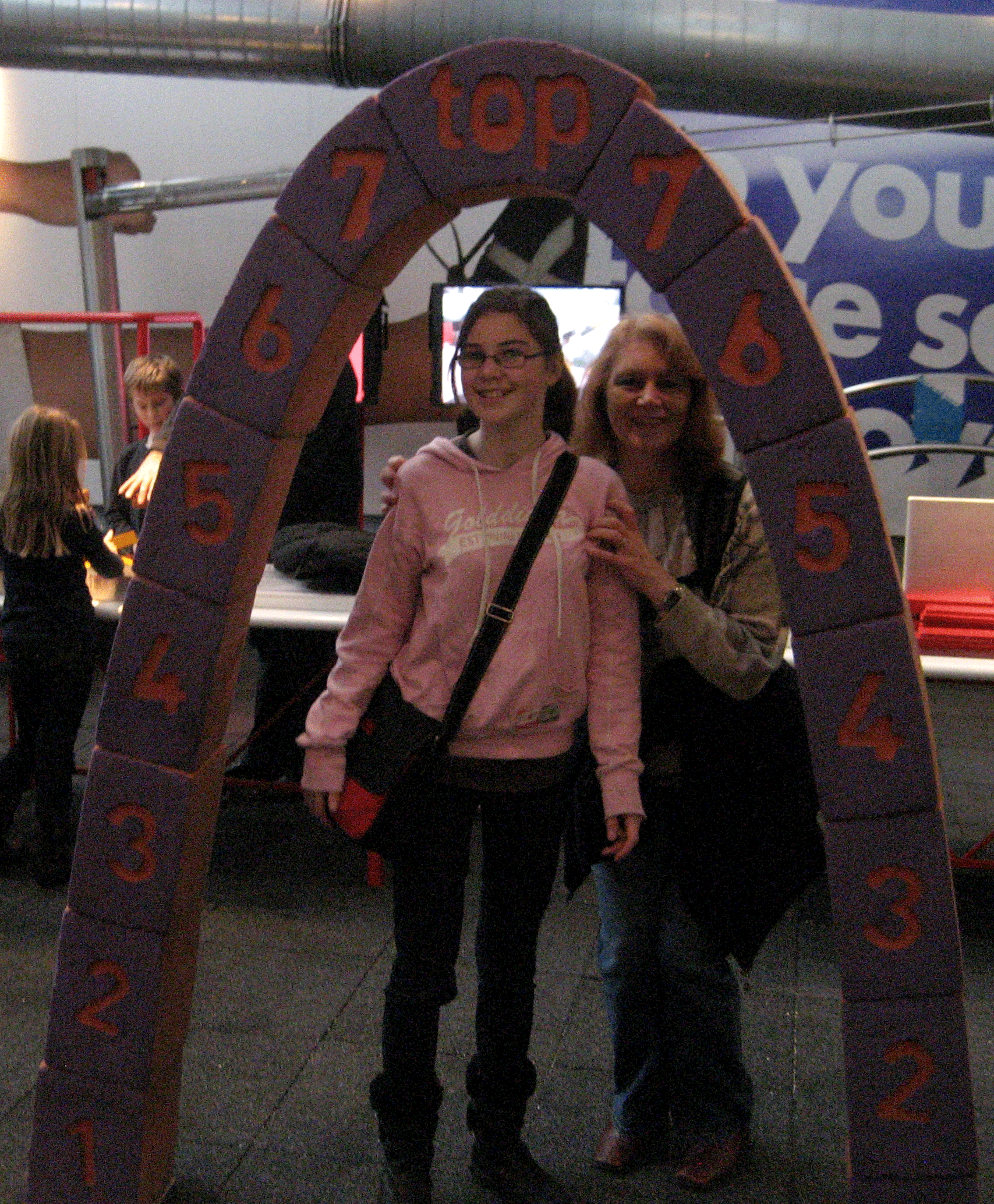 Margaret and Amber find out that the components of an arch must be assembled in the correct sequence.