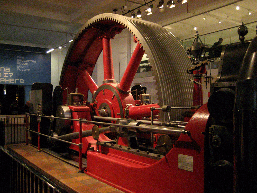 A steam engine, the type of which powered the Industrial Revolution.