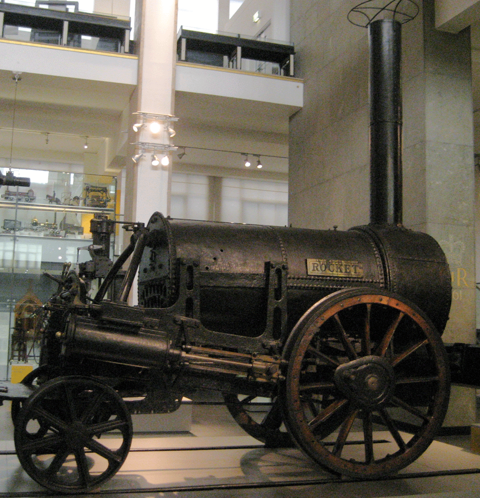 The first train, Stevenson's Rocket.