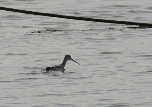 Another 'spotted' bird was present, a Spotted Redshank. Formerly there was a large passage of this species in the spring, many in their gorgeous white spotted black plumage, but in recent years we have seen it mainly as a scarce winter visitor. Spot Reds often swim in the manner of a giant phalarope, as can be seen here.