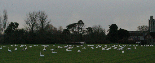 I started the 21st by dropping some borrowed CDs back at Roger’s house in Alderholt. From there its only a couple of miles to Harbridge in the Avon Valley, where large numbers of swans are wintering. There used to be a flock of one to two hundred wild Bewick’s there 20 years ago but these days we have to make do with just six, although there are close to 200 Mute Swans in the area. Unusually a Whooper Swan, which normally winters no closer than Lancashire or the East Anglian fens, is alsothere this year.