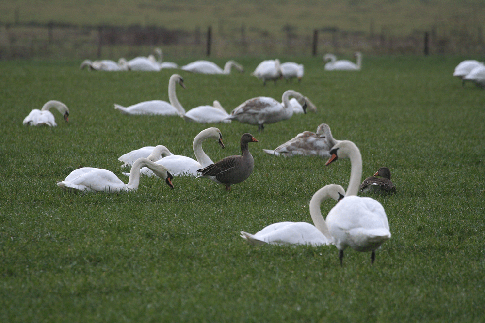 This flock contained 190 Mute, 6 Bewicks & 1 Whooper Swan, 60 Greylag, 50 Canada and 1 Egyptian Goose