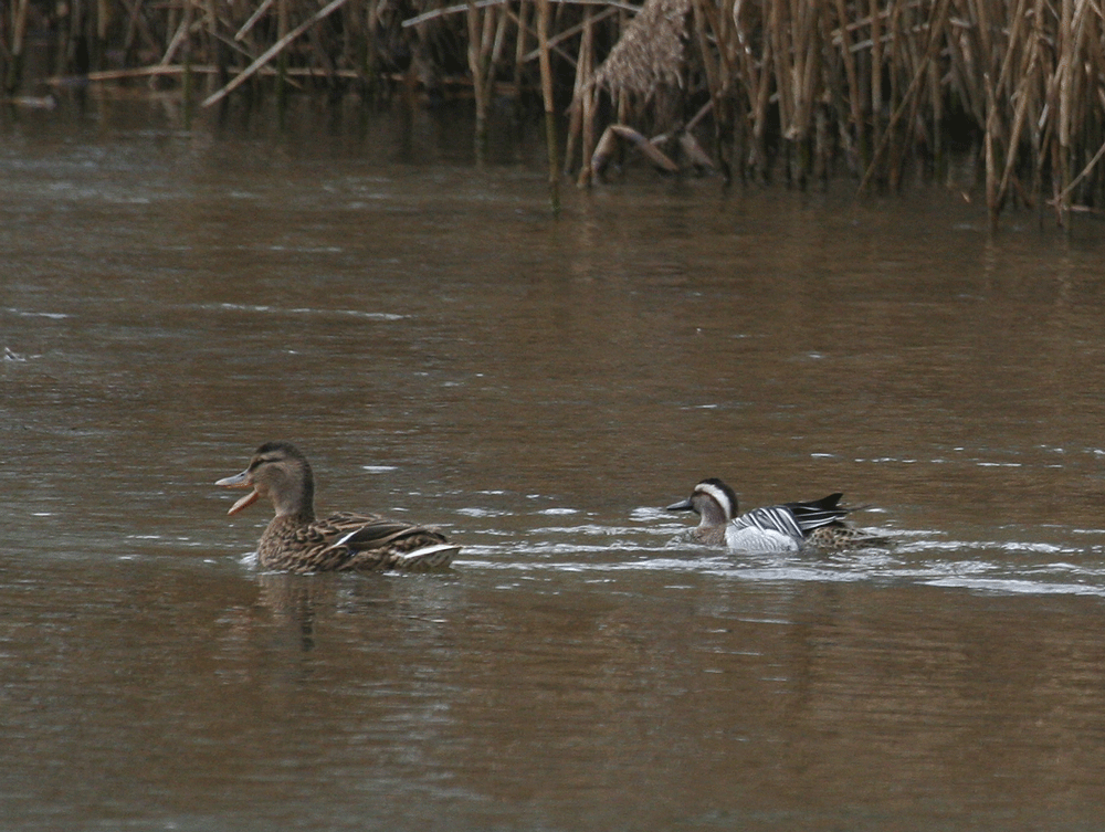 Before I went home I detoured to the River Stour at Shapwick, to the north of Wimborne. A drake Garganey has been seen here recently but its very early date (most don’t arrive from Africa until late March) and its prediction for a particular female Mallard have some to query its origins.