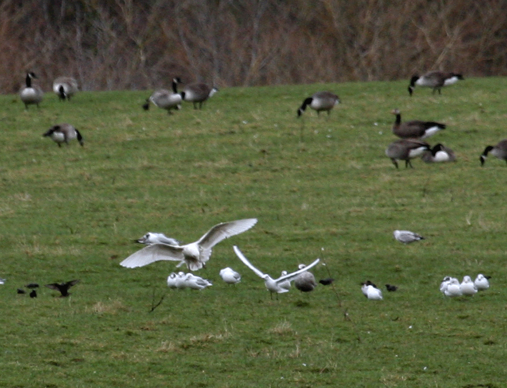 To our delight an Iceland Gull flew in and landed by the geese.......