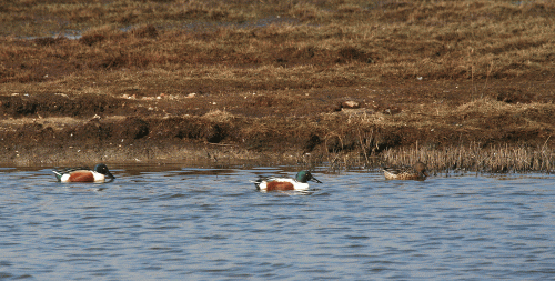 Two drake and one female Shoveler