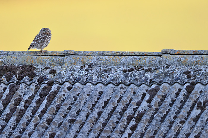 A Little Owl on a barn roof, similar to my view on the 15th. Photo from the internet.