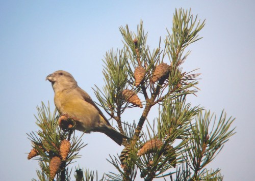 Crossbill taxonomy is complex and unresolved. In Scandinavia two very similar species co-exist, Common Crossbill and Parrot Crossbill which differ mainly by the size of the bill (they feed on different species of conifer cones). In the Caledonian Forest in Scotland there is a third species, Scottish Crossbill, that has evolved to feed on Scots Pines. As if it wasn’t hard enough to tell Common and Scottish apart, recent evidence has proved that Parrot breeds there as well.