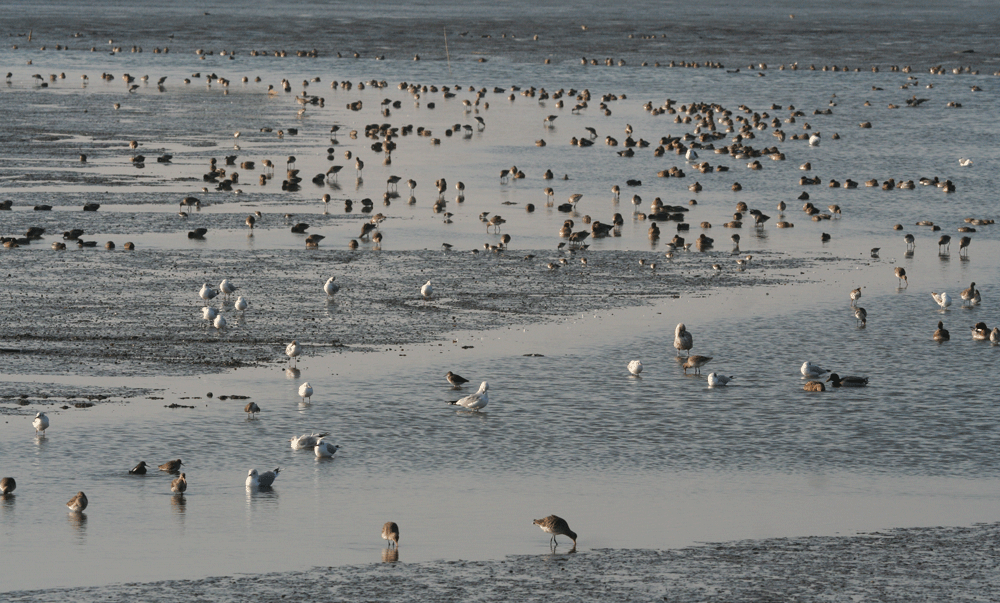 Over a thousand Brent Geese left the estuary and headed inland to feed during the first hour or so.