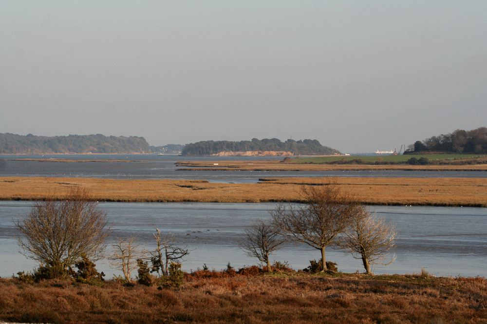 The peculiarly named River Piddle enters Poole Harbour at Swineham. To the right of the river is the saltmarsh of Swineham Point, to the left is Keysworth where Stour Ringing Group ran a very succesful ringing program in the late eighties and nineties until the estate changed ownership.