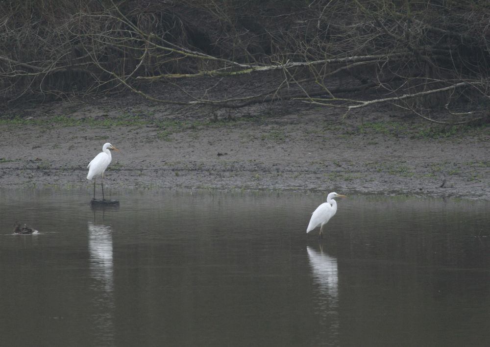 I have made a number of attempts to see a Great White Egret (GWE) this year. For the last decade a GWE has wintered at the Blashford Lakes near Ringwood, but given the number of lakes in the area finding it can be quite problematic, also this colour-ringed bird departs in mid January for its breeding colony in central France, so it needs to found soon after the turn of the year, something I have failed to do. I also tried for a GWE on Thorney Island at the weekend and two at Radipole in Weymouth on the 2nd of February, all unsuccessfully.