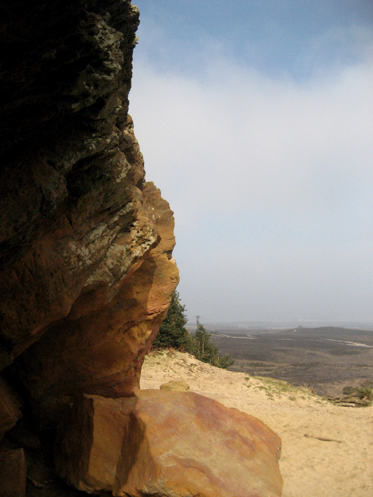 Tim and Gio at the Agglestone, a 400 tonne block of sandstone that looks very out-of-place in the middle of the wet heath.