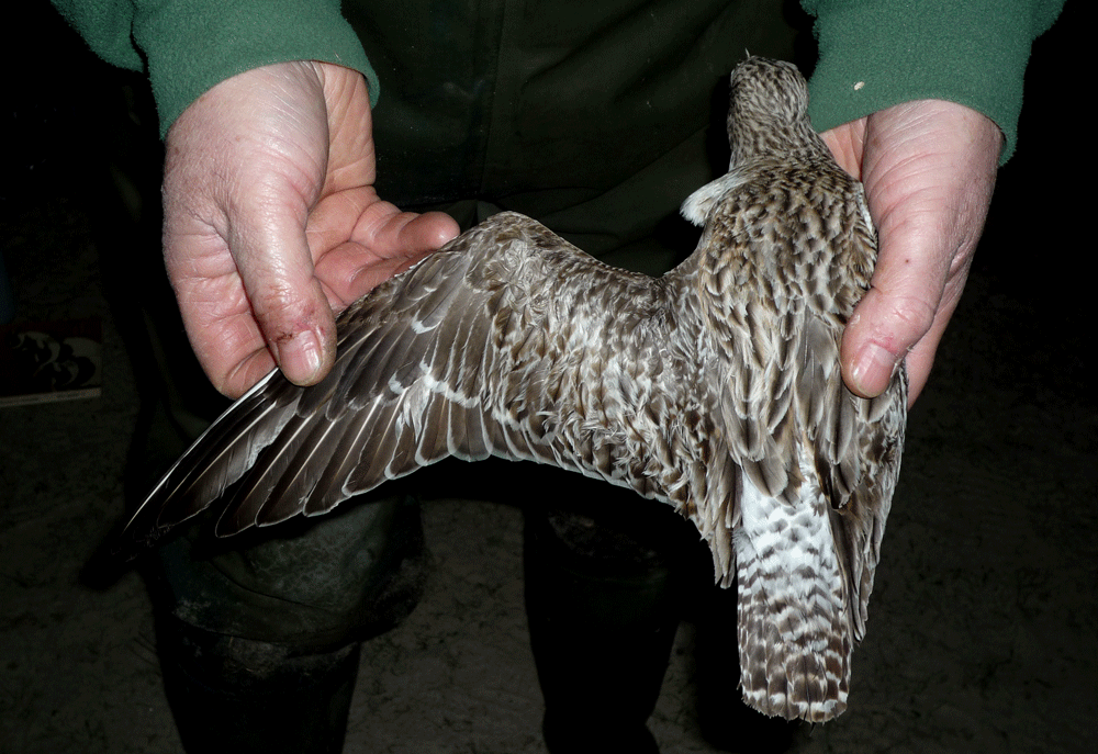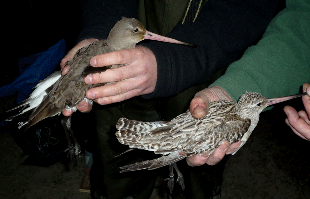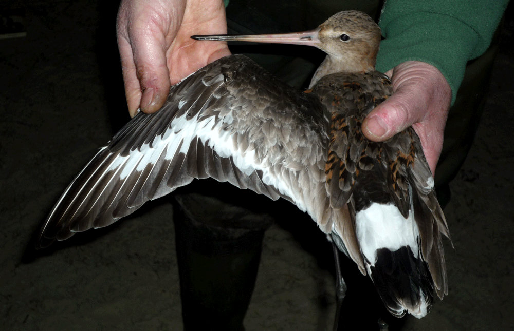 Enough about my comfort, how did the ringing go? Well the last visit trapped over 90 birds but we only caught six, 2 Black-tailed Godwits, 1 Bar-tailed Godwits, 2 Oystercatchers and a Dunlin. It wasn’t that bad however, all four species were ones I haven’t seen in the hand for a long time, there was time to examine them in detail and best of all, the Dunlin was a control, that is a bird previously ringed elsewhere.