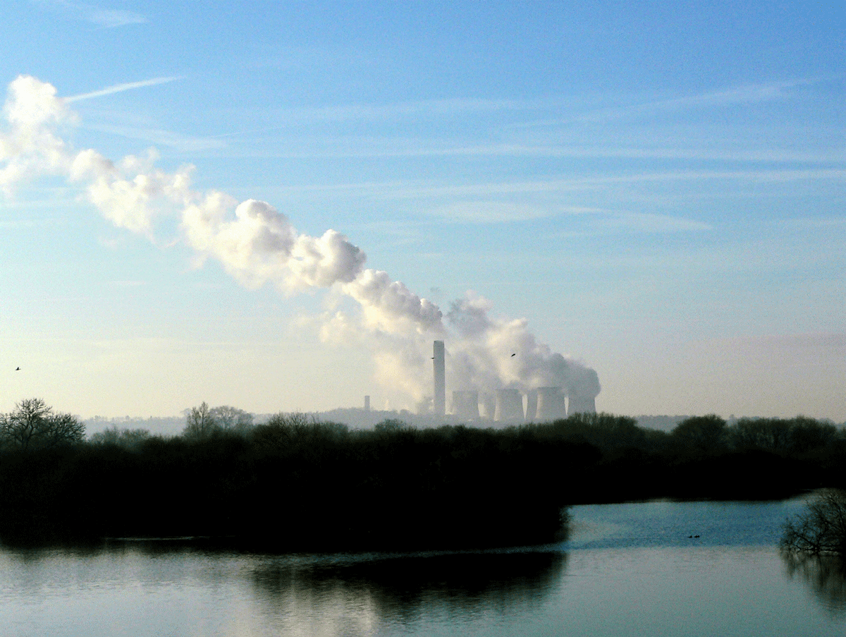 Attenborough nature reserve with the Ratcliffe-on-Soar power station in the distance.