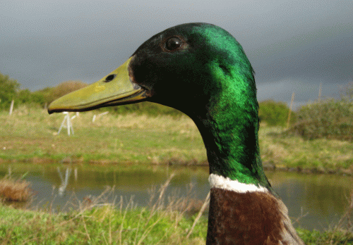 The pair of Mallards chased each other around the site until they blundered into one of the nets, but the female got out before we reached it.