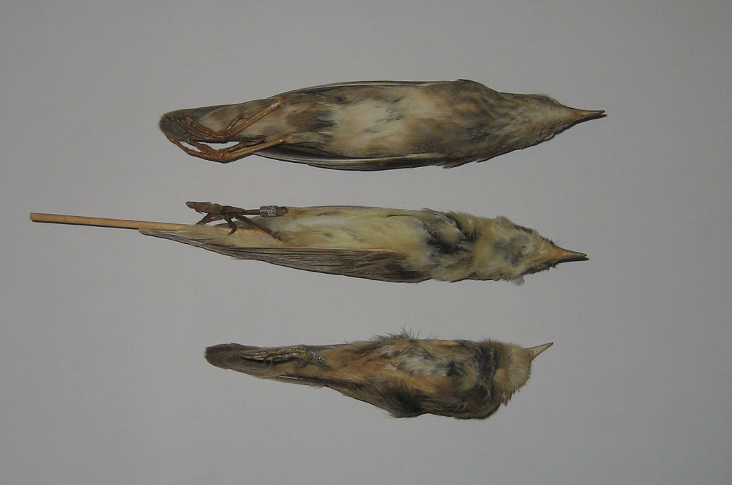 Trevor brought along some study skins from ringing in east Africa, top to bottom: River, Marsh and Reed Warbler.