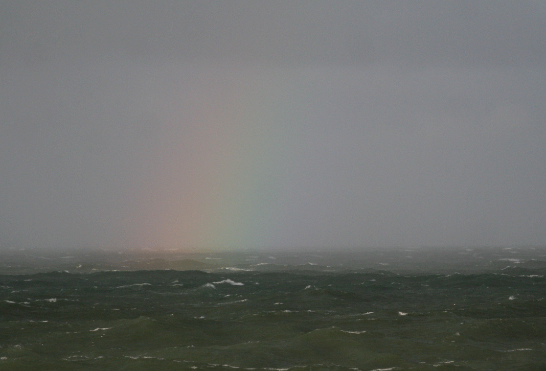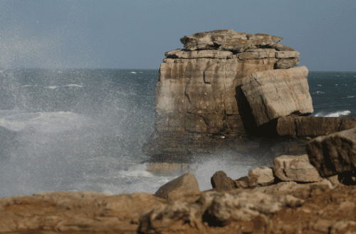 Looking straight out from the obelisk you get the full force of the wind and spray in your face.