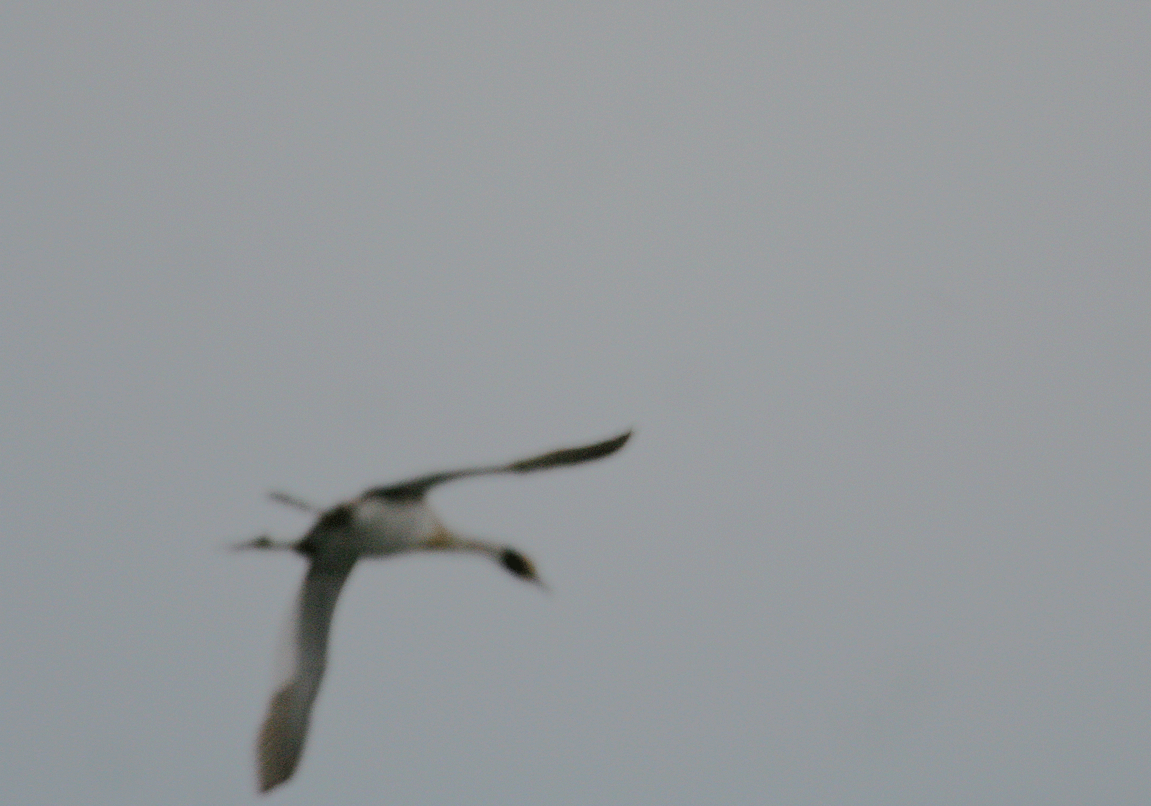 A poor photo in poor light but it goes does show how ungainly Great Crested Grebes can appear in flight.