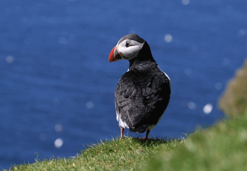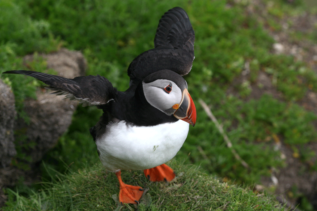 Puffins (or Tammie Norie in local parlance) used to sit on the cliff tops in large numbers but increased predation by Bonxies means they now fly directly to their burrows.