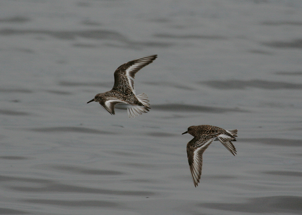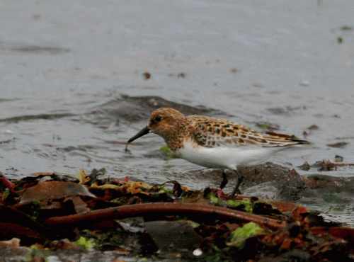 Sanderlings in breeding plumage are still migrating to their high arctic breeding grounds in early June