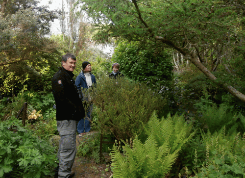 Paul, Margaret and Liz at Lea Gardens. Perhaps the most remarkable thing we saw in Shetland were these gardens belonging to Paul’s friends. With low temperatures, constant gales and high salt spray it is difficult to get anything to grow on these islands, but they have shown what can be done with time, effort and a lot of skill. It’s also a great place for Mealy Redpoll.
