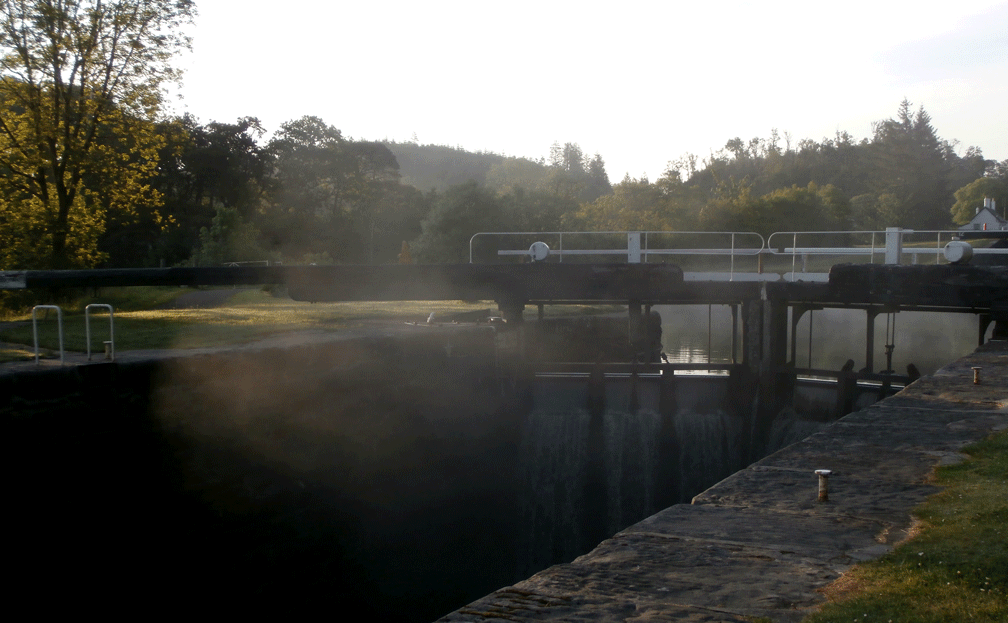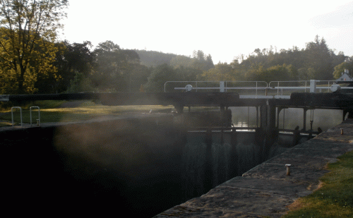 The Caledonian Canal joins Loch Ness and other lochs with the west coast allowing boats to pass from Inverness to Fort William. Ben Nevis, which at 1300m is the highest point of the UK can be seen in the background.