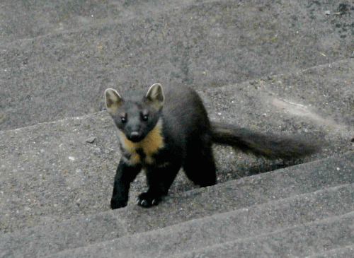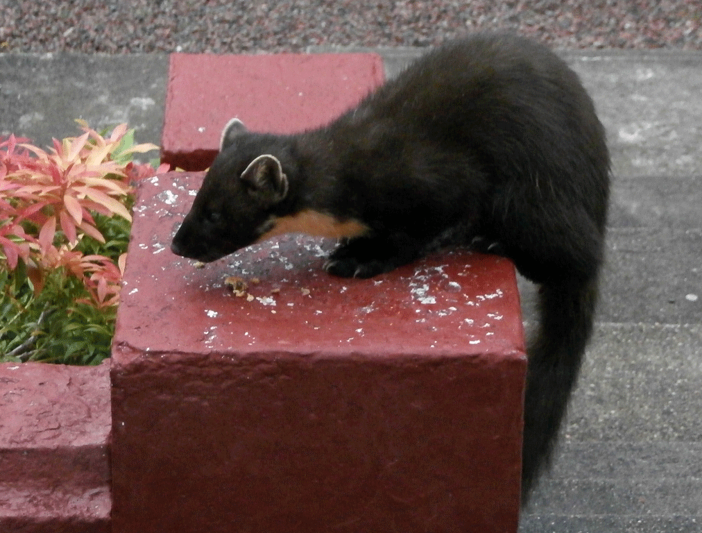 Later we headed north via Oban. From Oban we took a major detour, heading inland to cross Rannoch Moor before descending into Glencoe and rejoining the coast road. We drove through Fort William and headed for our B&B, Glendale Lodge near Banavie, famous for its visiting Pine Martens. We didn’t have to wait long in mid evening a Pine Marten appeared on the steps. I was sitting with my laptop on my knee editing photos. I rapidly ran off a few shots only to realise the memory card was still, of course, in my laptop! That sorted I got a few shots, the main problem that this attractive mustelid came too close, some times only inches away on the other side of the glass! I can certainly recommend this B&B to anyone who wants to see this wonderful animal.